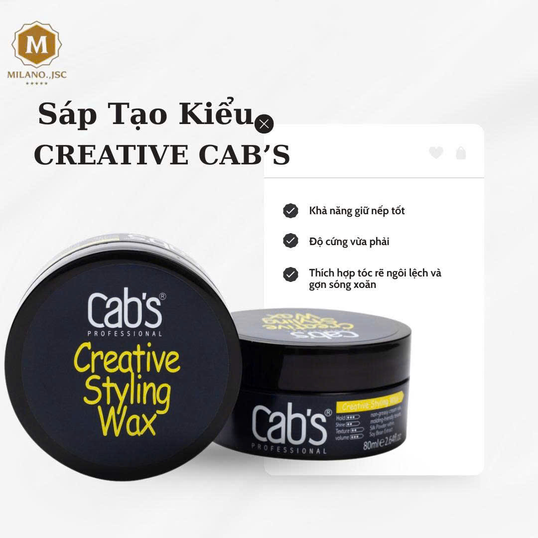 Với khả năng giữ nếp tốt ,độ cứng vừa phải, Sáp tạo kiểu tóc Creative Cab’s rất thích hợp với những mái tóc rẽ ngôi lệch và gợn sóng xoăn đầy phong trần mà không kém phần lịch lãm.